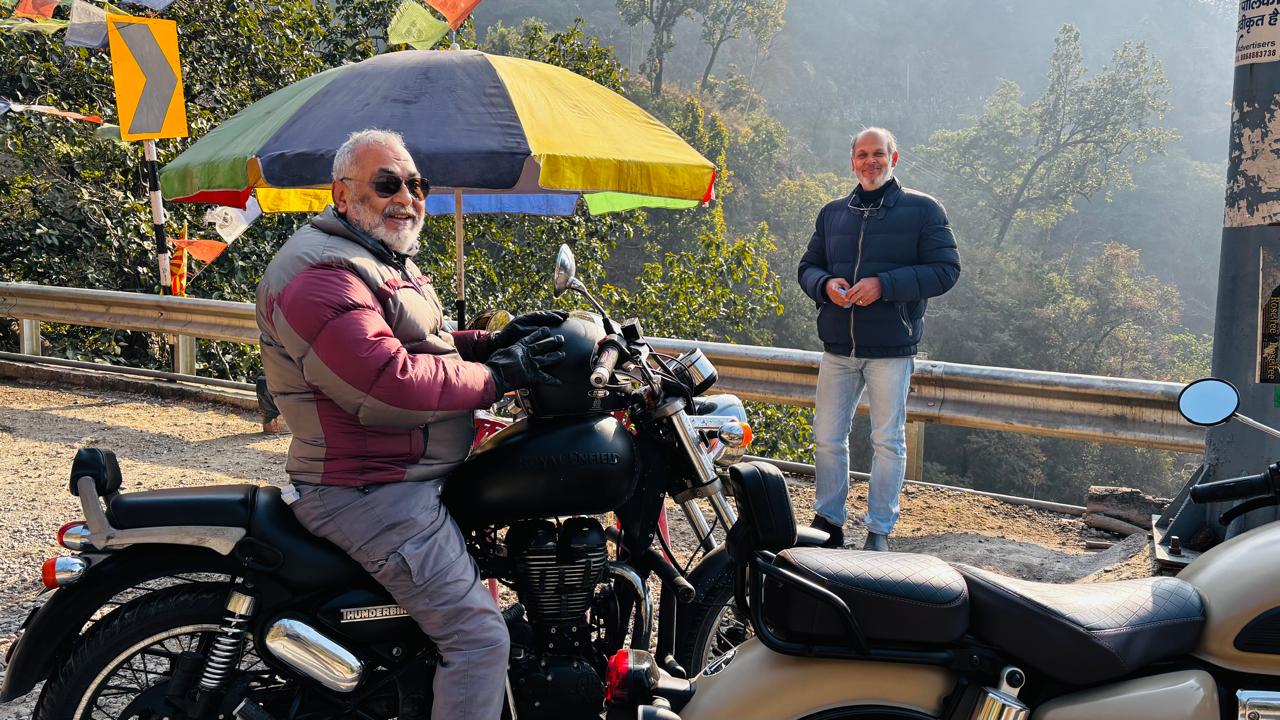 On 16 February 2026, a Sunday ride was planned with my old colleague and fellow biker, Prof. Vinay Rana, astride his Honda H’ness CB350. We met at 7:15 a.m. near Sai Mandir on Rajpur Road. A new companion joined us—Mr Amit Sachdeva, 52, an ESG consultant—riding another Thunderbird 500, with his 20-year-old son as pillion. Three bikes, four riders, and a familiar route: via Raipur to Thano, onward to Narendra Nagar, and back through the Rishikesh Bypass.